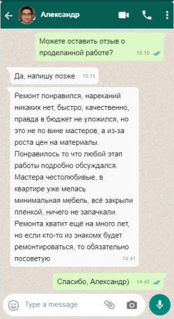 После заключения договора приступаем к ремонту. Длительность капитального ремонта составляет двадцать дней, а косметического пять. Срок работы зависит от площади помещения и его особенностей.